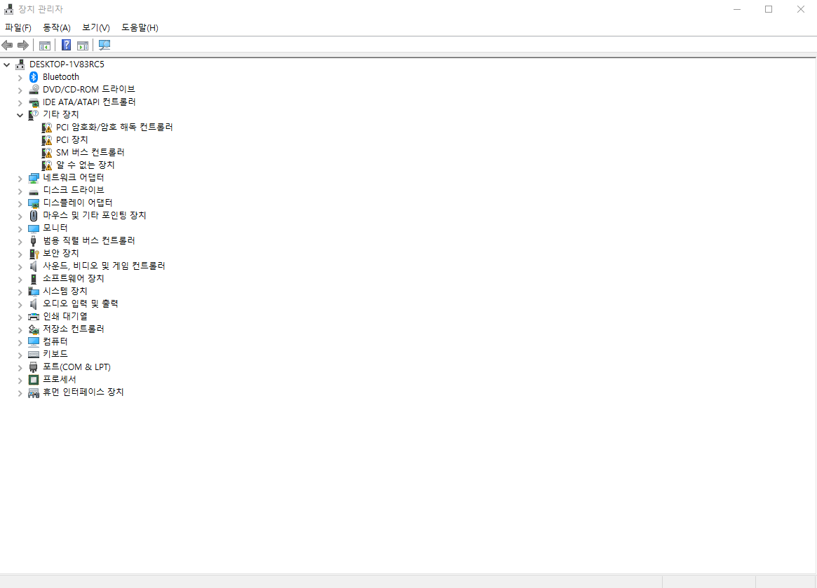 윈도우키+X를 눌러서 장치관리자를 클릭하시면 위와같은 화면이 나옵니다.