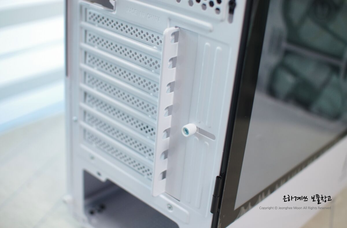 왼쪽에 살짝보이는 강화유리 측면개폐손잡이를 당기면 쉽게 케이스 오픈이 가능합니다.