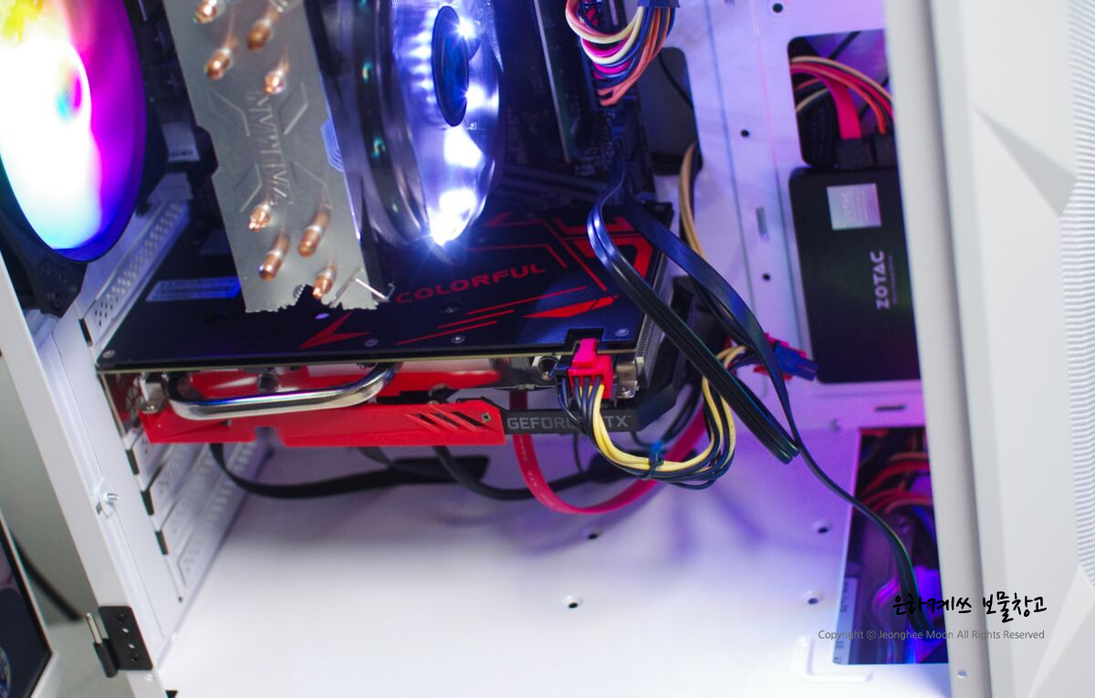그래픽카드까지 연결하고 HDD,SDD 케이블 및 각종 전원케이블을 연결하면 이제 컴퓨터 케이스 조립은 완료입니다. ㅎㅎ