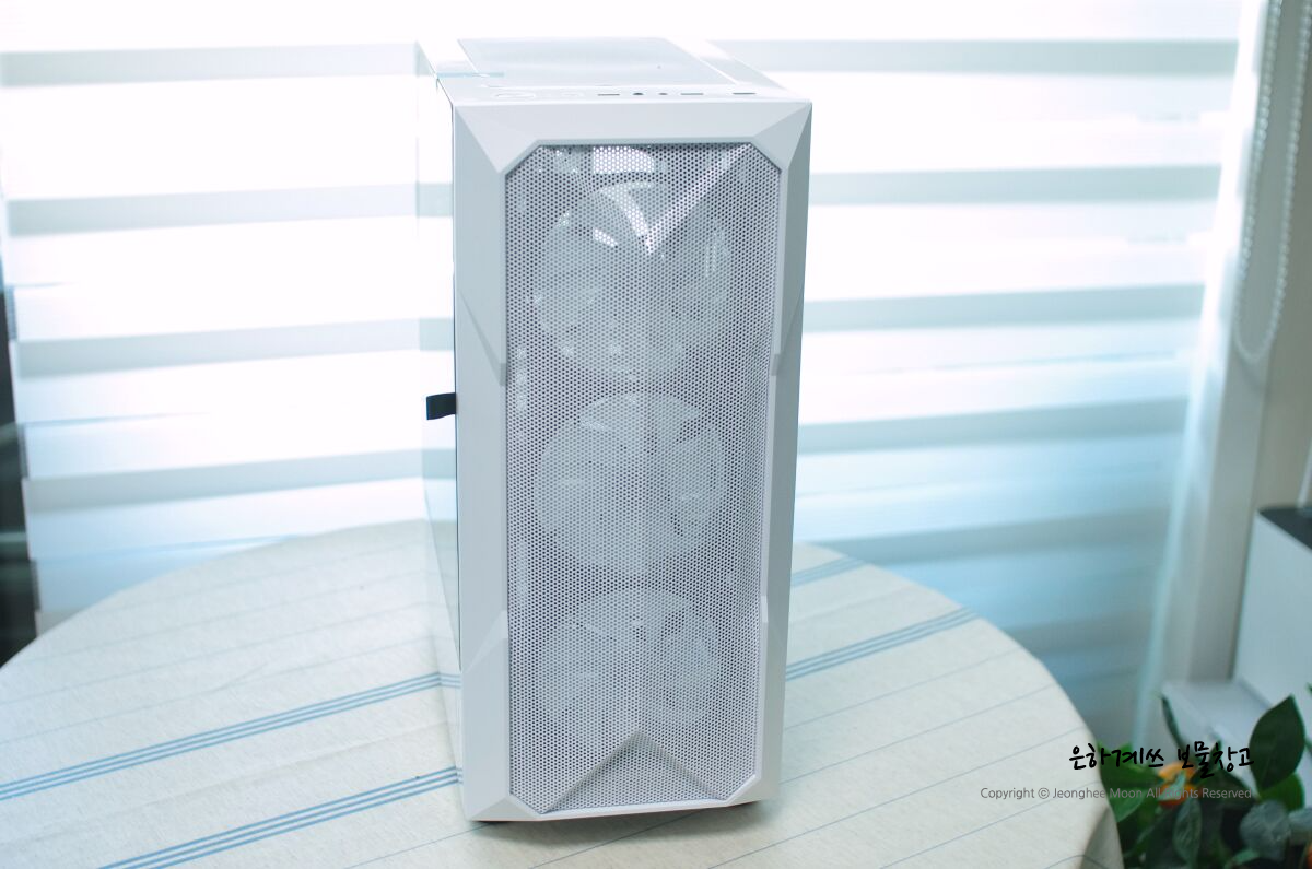짜잔~ 매쉬앞면에 120mm팬이 3개달려있어 내부발열을 잘 잡아줄수있는 시스템이고