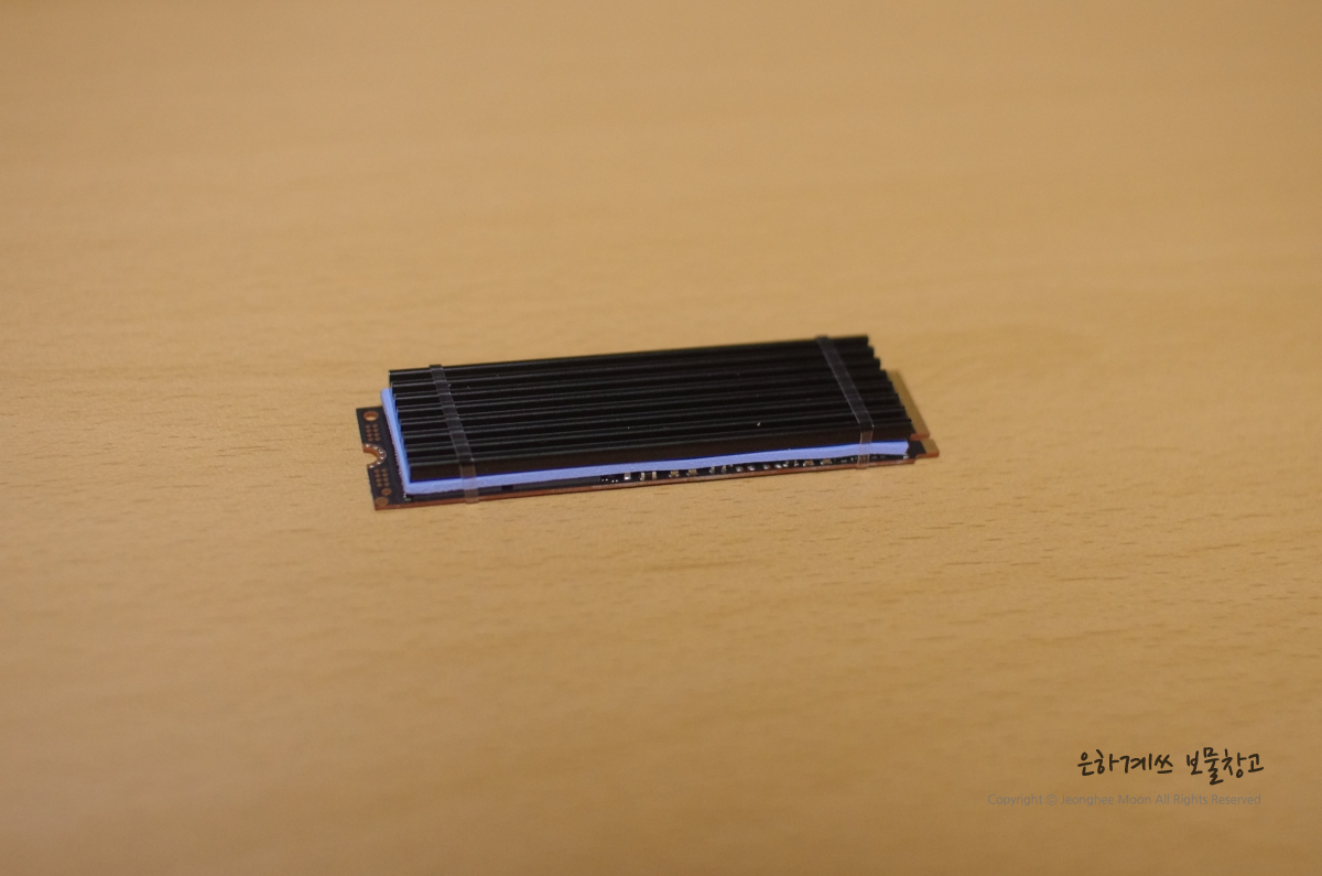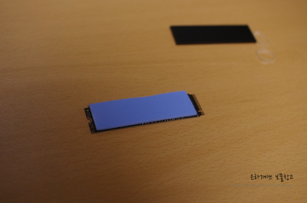 간단하게 NVMe M.2 SSD에 파란색 써멀패드 붙이고 위에 방열판을 올리고