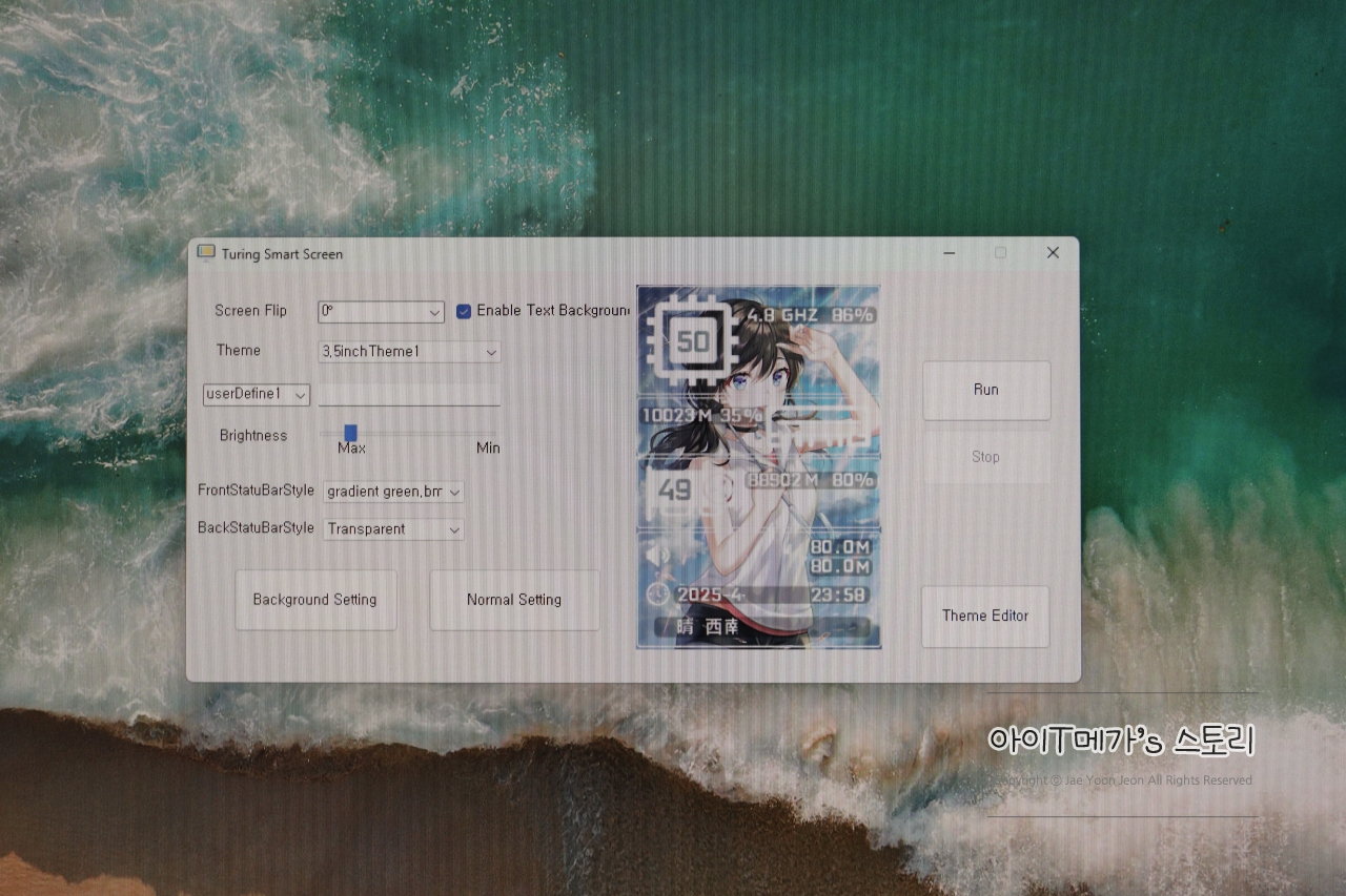 Turing Smart Screen 앱을 실행하셔서 원하는 테마를 선택해서 세팅하시고