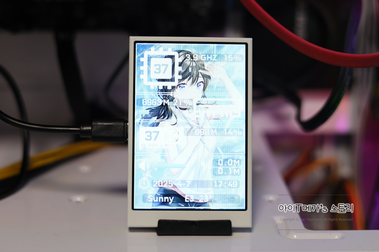 구성품은 3.5인치 스크린과 usb c타입 케이블,메인보드에 직접 연결할 수 있는 케이블 본체 거치대 메뉴얼