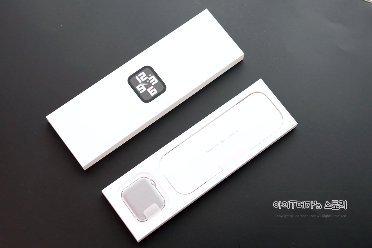 44mm 모델의 정확한 규격은 세로 44mm, 가로 38mm, 두께 10.7mm이며, GPS 모델 기준 32.9g의 가벼운 무게를 자랑합니다.